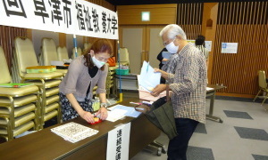 令和3年度の第4回草津市福祉教養大学の第3講座はオープンキャンパスとし、詩人の里みちこさんの講演がありました。この会場設営、受付業務、後始末などの業務を手伝いました。