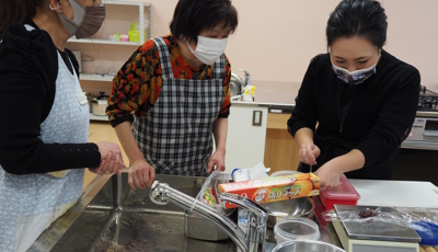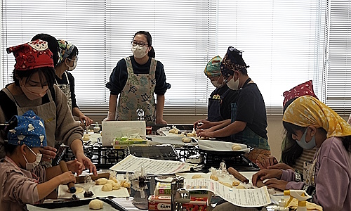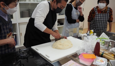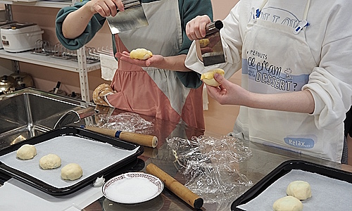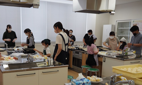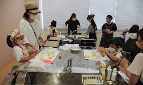 パンの生地づくりは、発酵のため長い時間が必要のため、あらかじめ、スタッフで作って、1個づつ切り分けて準備し、参加者の皆さんには、パンにあんこなどを包み込むところから参加していただいた皆さんに作っていただきました。