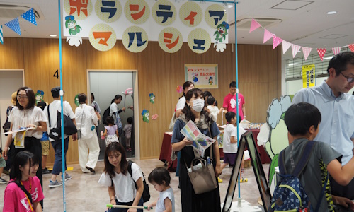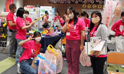草津市立市民総合交流センター(愛称キラリエ草津)ができて以降、毎年キラリエまつりが開催されています。今年は、草津市制70周年で、この記念行事との関連で、7月6日でした。この中で、草津市社会福祉協議会は、ボランティアマルシェを、キラリエ草津4階にて開催し、わがVG.フリーダムもお手伝いをしました。また、当日はたくさんの学生ボランティアもきてくれました。
